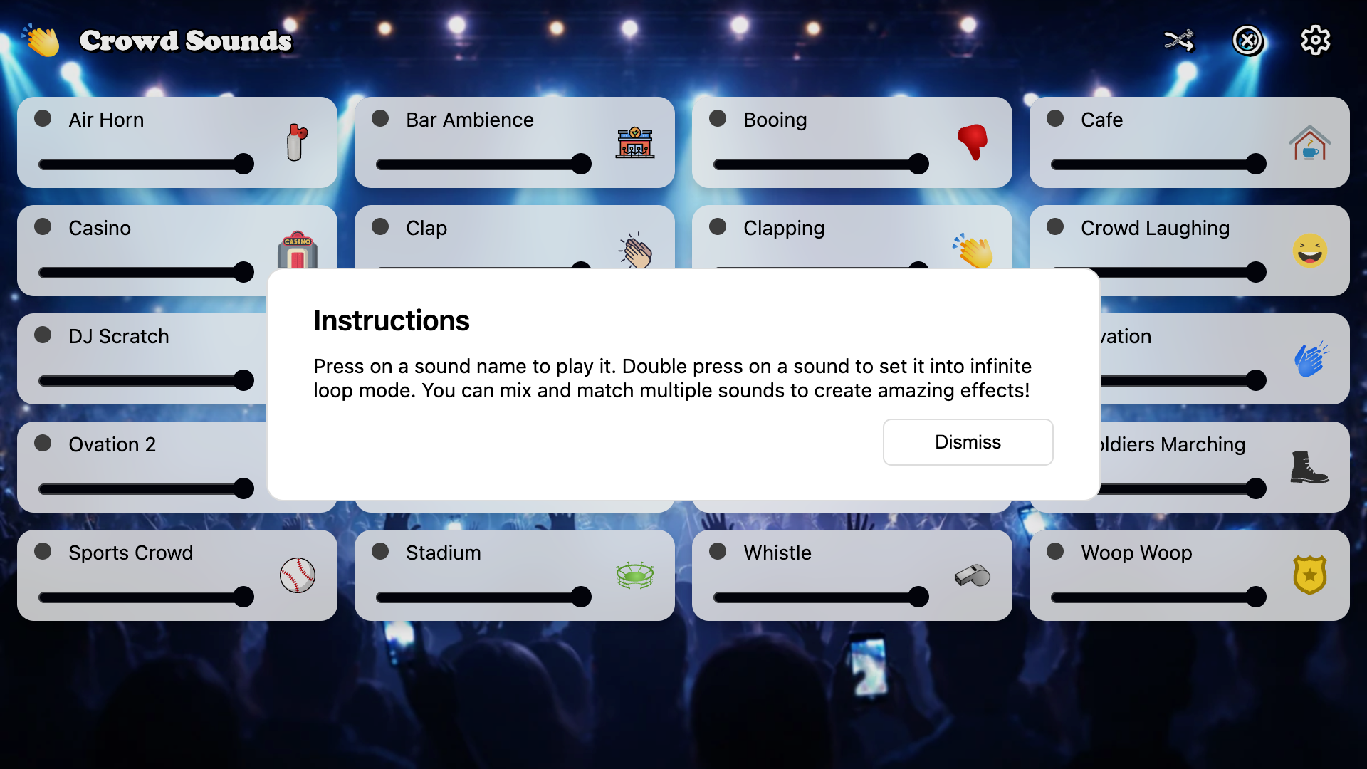 Bring any moment to life with Crowd Sounds, the ultimate crowd reaction soundboard! Turn any moment into a live audience.
