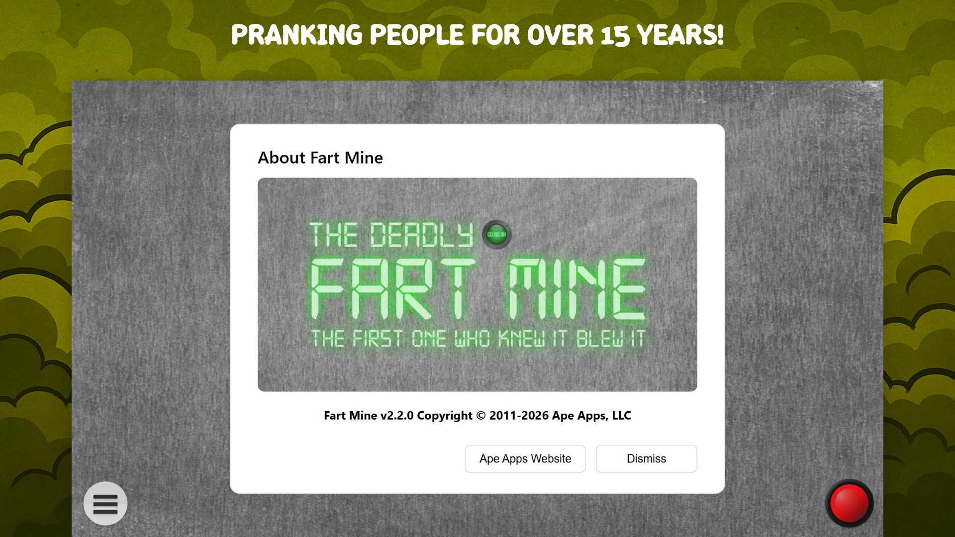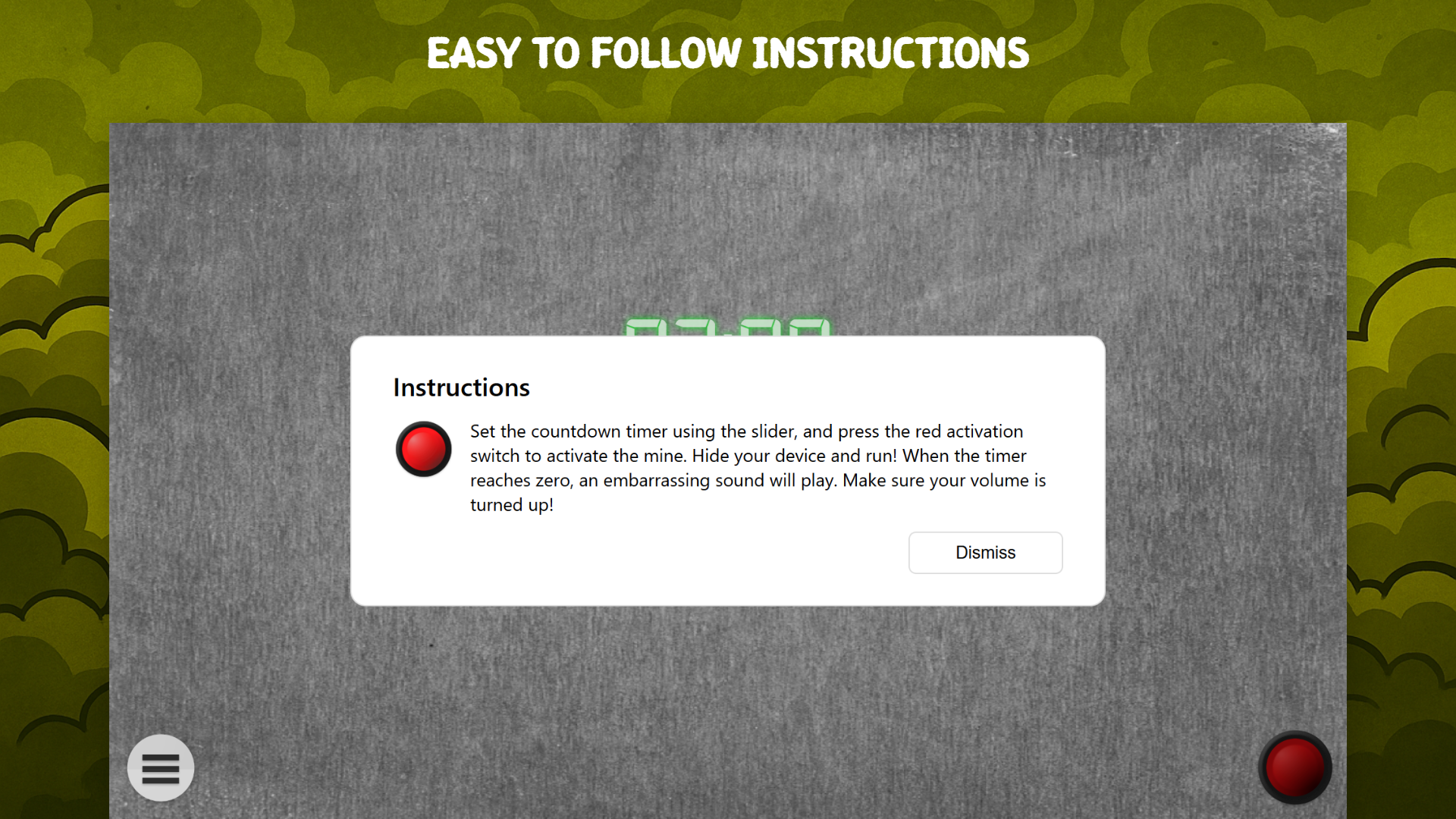 The ultimate Fart Prank! With Fart Mine, you set the timer, hide your device near an unsuspecting victim, and casually walk away (It works better if you walk away while whistling). When the timer hits zero, Fart Sounds will play, humiliating whoever was near the blast!