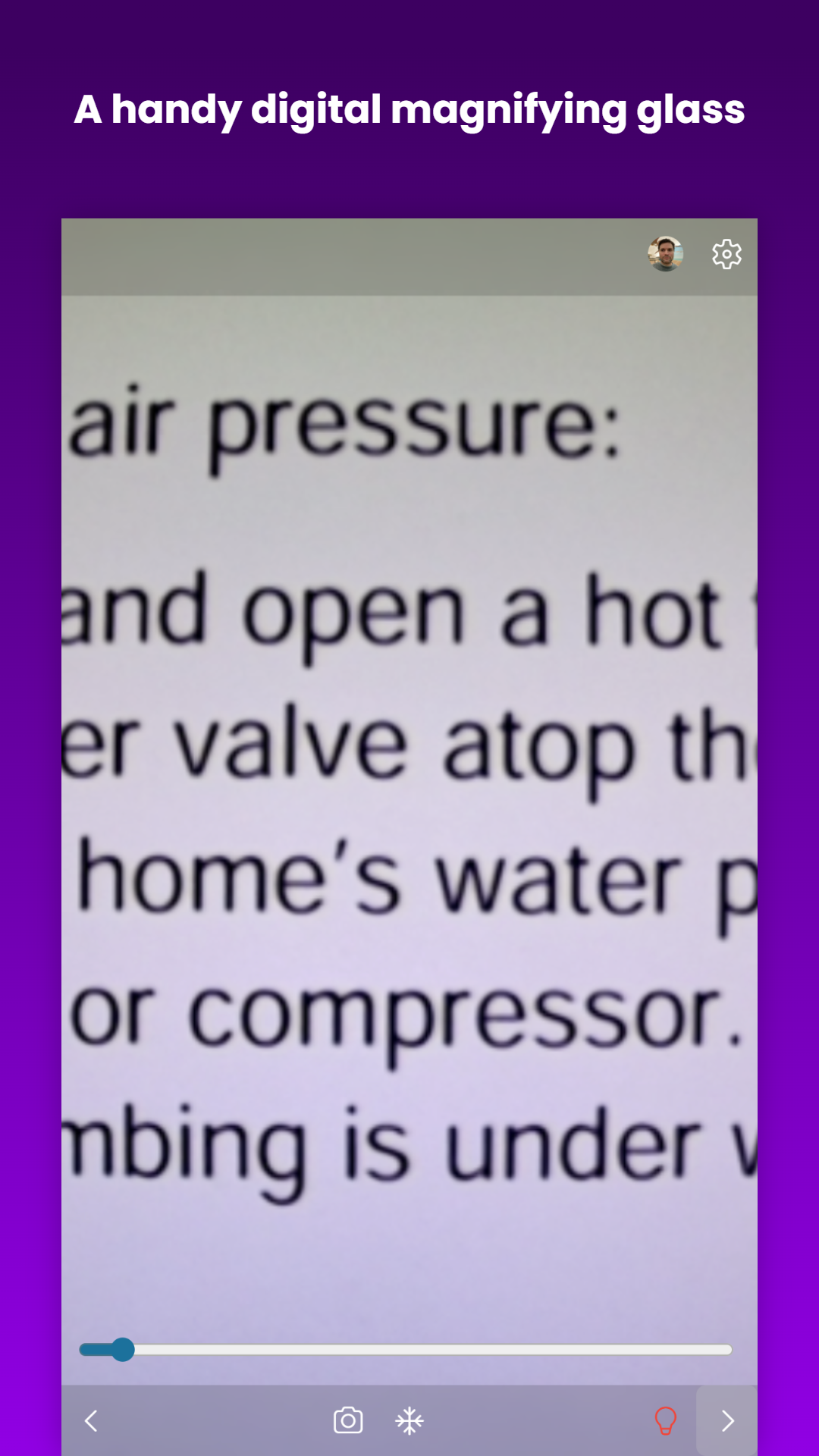 Magnifying Glass is a handy utility app that uses your phone's rear facing camera with maximum digital zoom and macro focus mode to produce a stunning magnifying glass effect. Results may vary based on device capabilities, but in my experience it works better than a real physical magnifying glass. The only difference is that you can't use it to fry ants :-(