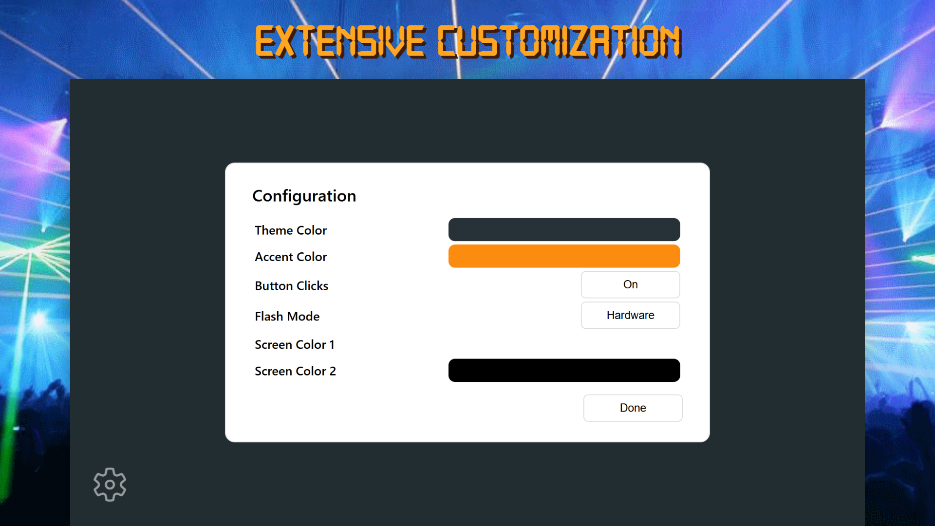 Tip: When you press the music button, you will get a hip techno music beat to liven the mood, but you can also listen to your own tracks stored on your device. Find music and other customization options in the main settings menu.
